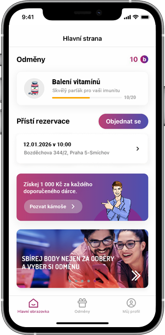 S mobilní aplikací PLASMA PLACE si jednoduše rezervujete termín odběru, uvidíte stav svého bodového konta a neunikne vám žádná novinka.